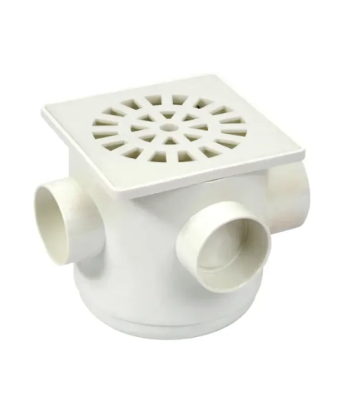 D RADA 150X150X75 - Conjunto composto de grelha quadrada, porta grelha e sifão móvel