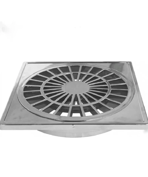 Conjunto de grelha e porta grelha com suporte quadrado em abs cromados de 100mm para caixas sifonadas, ralos ou boca de cano de esgoto de 100mm