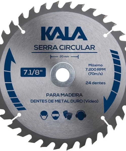 Excelente Disco de Serra Para Madeira da marca Kala. É utilizada para o corte de Madeira em serralherias, marcenarias, fábricas de móveis, entre outros. Proporciona corte suave e rápido.