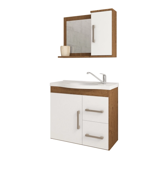 Armário possui espelho: Não Armário possui espelheira: Sim Armário Acompanha pia/lavatório? Sim Dimensões da pia/lavatório AxLxP cm: 9,7 x 63,1 x 32,5