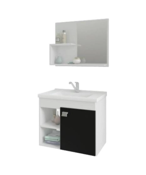 ARMÁRIO COM ESPELHEIRA LÓTUS 55CM - COR BRANCO E PRETO- MGM