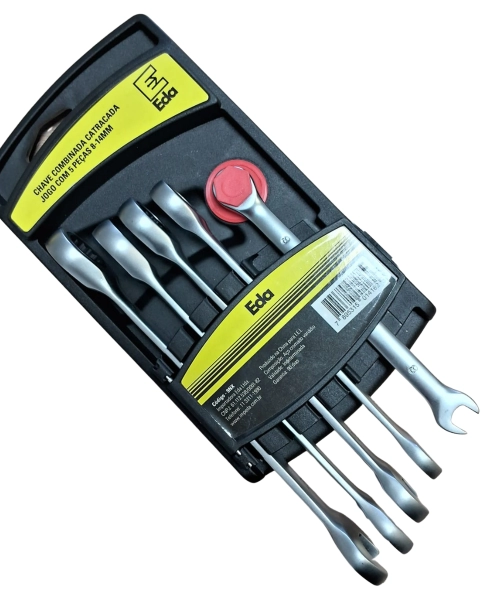 Jogo de chave fixa 06 peças 6 a 13 mm mais rack. O Jogo de chave fixa 06 peças 6 mm a 13 mm. Indispensáveis nos segmentos industriais em setores de manutenção mecânicos e elétricos, para apertar e desapertar porcas e parafusos.