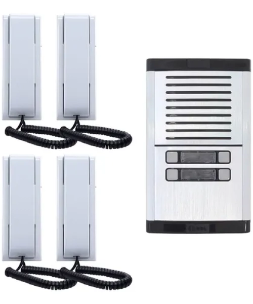Esse é aquele modelo clássico de interfone para condomínios com um botão campainha para chamar cada ponto, simples de instalar e fácil de confiar.