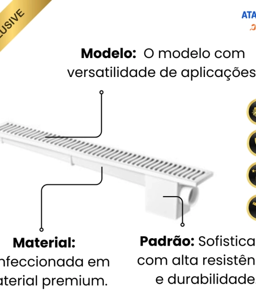 Durabilidade: Construído para durar, o ralo linear Herc resiste à ação do tempo e de produtos químicos.