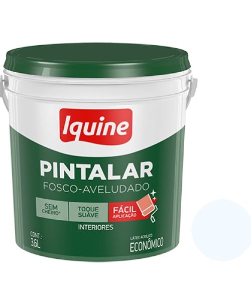 Tinta Branca Pintalar 3,6L da Iquine é uma solução de látex composta por uma fórmula vinil-acrílica que é ideal para decorar paredes internas de forma prática e econômica.