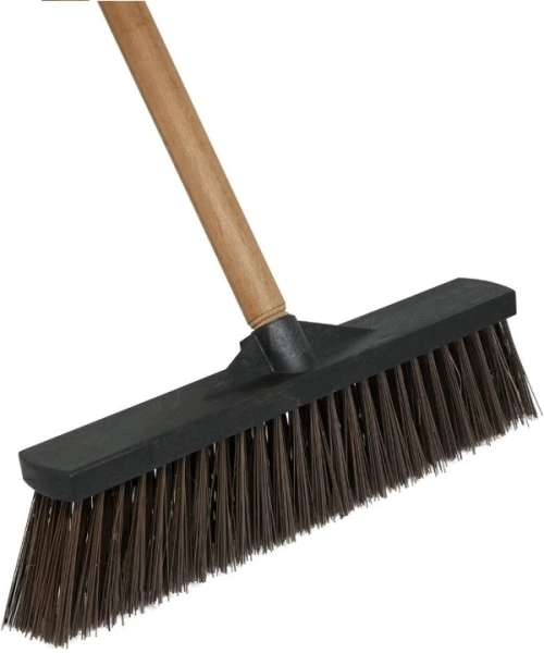 Vassourão de gari Cerda em PP resistente para limpeza pesada, e Cabo em madeira reforçado revestido de 1,2Mt. Com suas, oferece alta resistência e capacidade de remover sujeiras mais pesadas com facilidade.