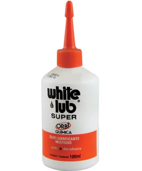 WHITE LUB Óleo Lubrificante Multiuso. Composto de óleo mineral e aditivo antioxidante, com viscosidade concentrada, ideal para lubrificação leve de peças e partes. White lub Multiuso foi desenvolvido para lubrificar e evitar o desgaste precoce das partes metálicas de máquinas de costura, eletrodomésticos, bicicletas, engrenagens, dobradiças, entre outros.